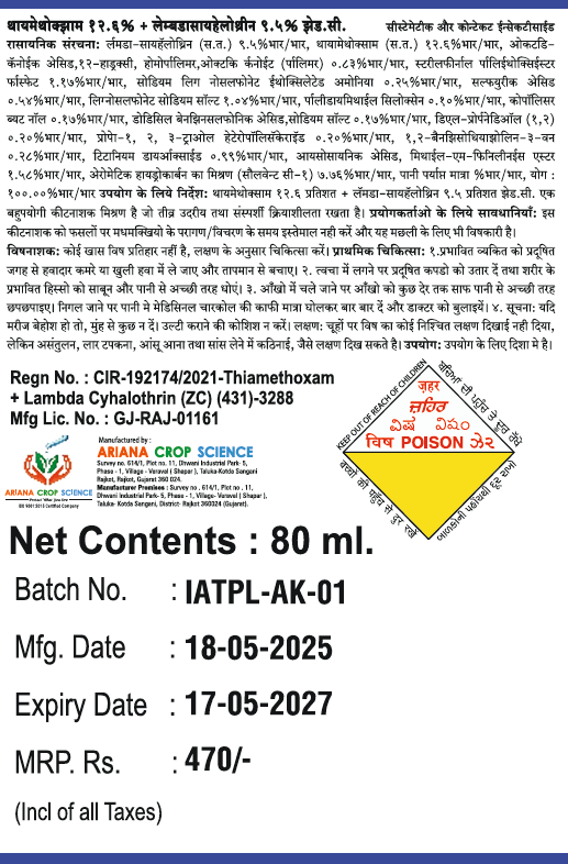 & Free ShippingThis product is an insecticide formulation of Thiamethoxam 12.6% + Lambda Cyhalothrin 9.5% ZC.
